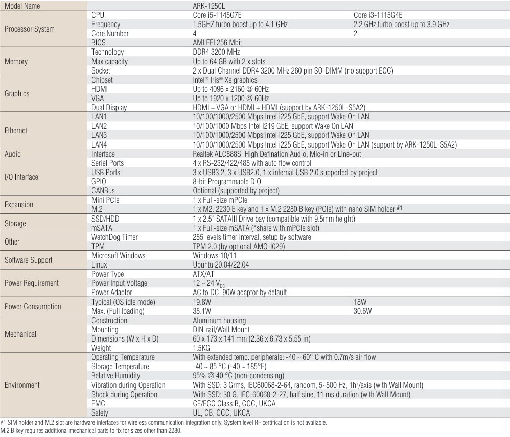 ● 3 x Intel GbE, 4 x RS-232/422/485, 8-bit DIO, 可选CANBus